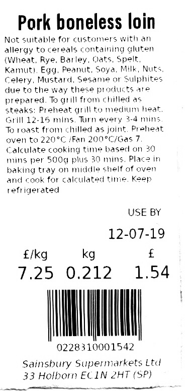 here (left) are the cooking instructions for a piece of meat that I bought at Sainsbury’s. They’re all in metric with no Imperial translation.