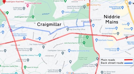 3. Away from big roads. The bike lanes recently built in Edinburgh, like the one on Crewe Road North, in the picture, miss the point of cycling. The paths are built along the edges of busy roads, instead of supporting the use of old railway lines, canal towpaths, footpaths and back streets, all of which Edinburgh has in large numbers. Cycle lanes are never swept or gritted in winter, are often blocked by parked cars and leave the riders inches away from cars which almost always defy the speed limit. The idea of imposing a low speed limit in order to protect cyclists doesn’t seem to have occurred to anybody, and wouldn’t work even if it had. Motorists regard obeying a 20 mph speed limit as a ridiculous thing to expect them to do.