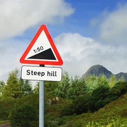 The railways regard 1 in 50 as a steep gradient. Hills are one of the most effective deterrents to cycling, and bike paths should avoid them by taking paths along flat (ish) landscape features like rivers, canals, coasts and railway lines.