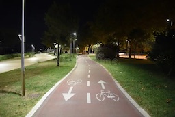 5. Lit at night, swept regularly, gritted in winter and free from parked cars. (The picture shows the Pescara Path, in eastern Italy, at night.)