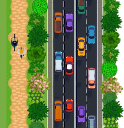 | Do not do this. Sooner or later it will kill someone. | Cyclists ride on extended pavements, one on each side of the road | Cyclists ride in both directions on an extended pavement |